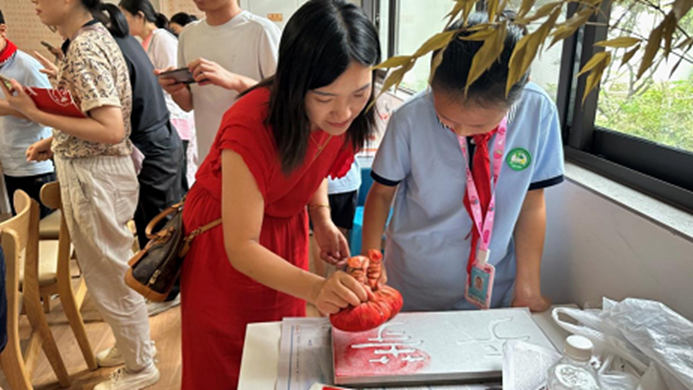活动伊始,戈老师首先对苏州碑刻的历史进行了介绍,并展示了自己的作品,接着带领学生开始动手体验,向学生展示刻碑、拓印等技艺,活动体验现场学生们认真听讲、积极参与实践,对苏州碑刻技艺有了更深层次的了解,活动起到了非遗技艺推广保护和传承的积极作用。