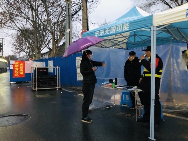 2月14日上午,市地方志办公室党组成员、副主任诸晓春再次准时以党员志愿者身份来到街道防疫卡口执勤,询问来往居民、车辆情况,按实登记、放行。下午,秘书处长也及时到社区测量了体温后及时到岗,冒雨全力志愿服务居民群众出行。