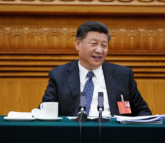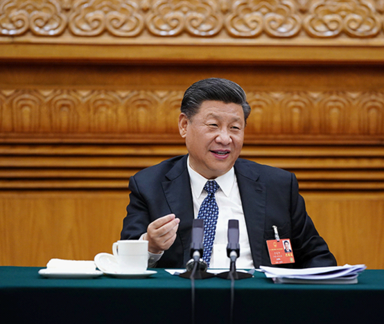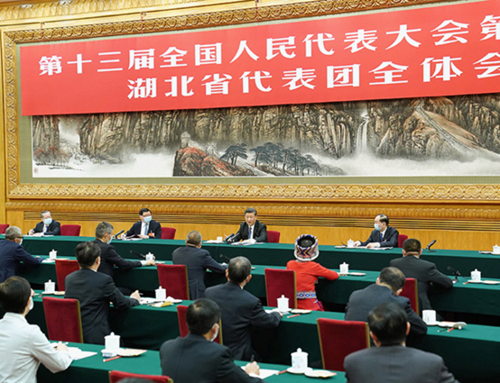 5月24日,中共中央总书记、国家主席、中央军委主席习近平参加十三届全国人大三次会议湖北代表团的审议。新华社记者 黄敬文 摄